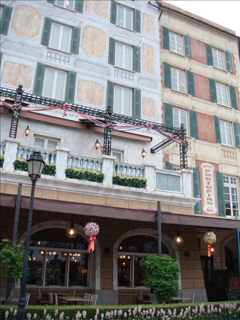 推薦大家一個既可以用餐又可以觀賞水上秀場的好地點餐廳,但是要先從一個「飯店與樂園通路」到二樓去(但這代表算是出了迪士尼了,所以會有服務人員幫你蓋螢光印章,這樣等一下就可以再進到迪士尼)