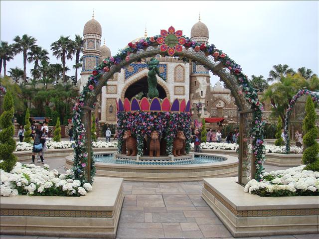 來到阿拉伯海岸,映如眼簾的就是這美麗的花圃,真的是美不勝收~看看阿拉丁神燈的吐水雕像每個表情都不同,還真可愛呢!
