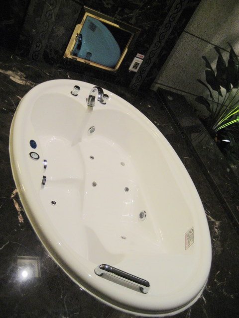 這裡讓小魔女感到最享受的就是奇摩生活內大家都在談論的按摩浴缸啦!這應該是超音波七彩按摩浴缸吧!真是有夠舒服的啦!自己帶了LUSH的浴球或精油一起泡澡的話會更讚哦!當然囉!館內也贈送了一包牛奶浴的粉供客人泡澡的啦!但小魔女覺得還是自己帶含有精油成份、花香成份的浴球更能讓人放鬆一下哦!隨著浴缸會有不同顏色的變換,加上泡澡還有電視可以看、又可以按摩一下雙腿,試想若是台北的家裡也是這樣的話,不知該有多好~![]()